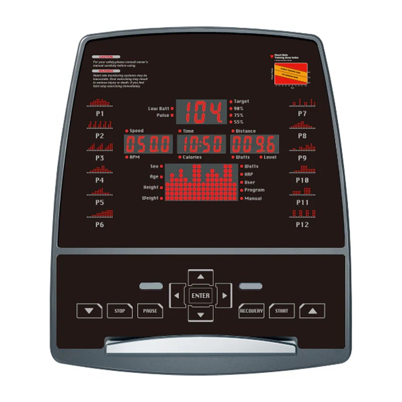 - Display Readout: Time, Speed, RPM, Distance, Calories, Watt, Resistance